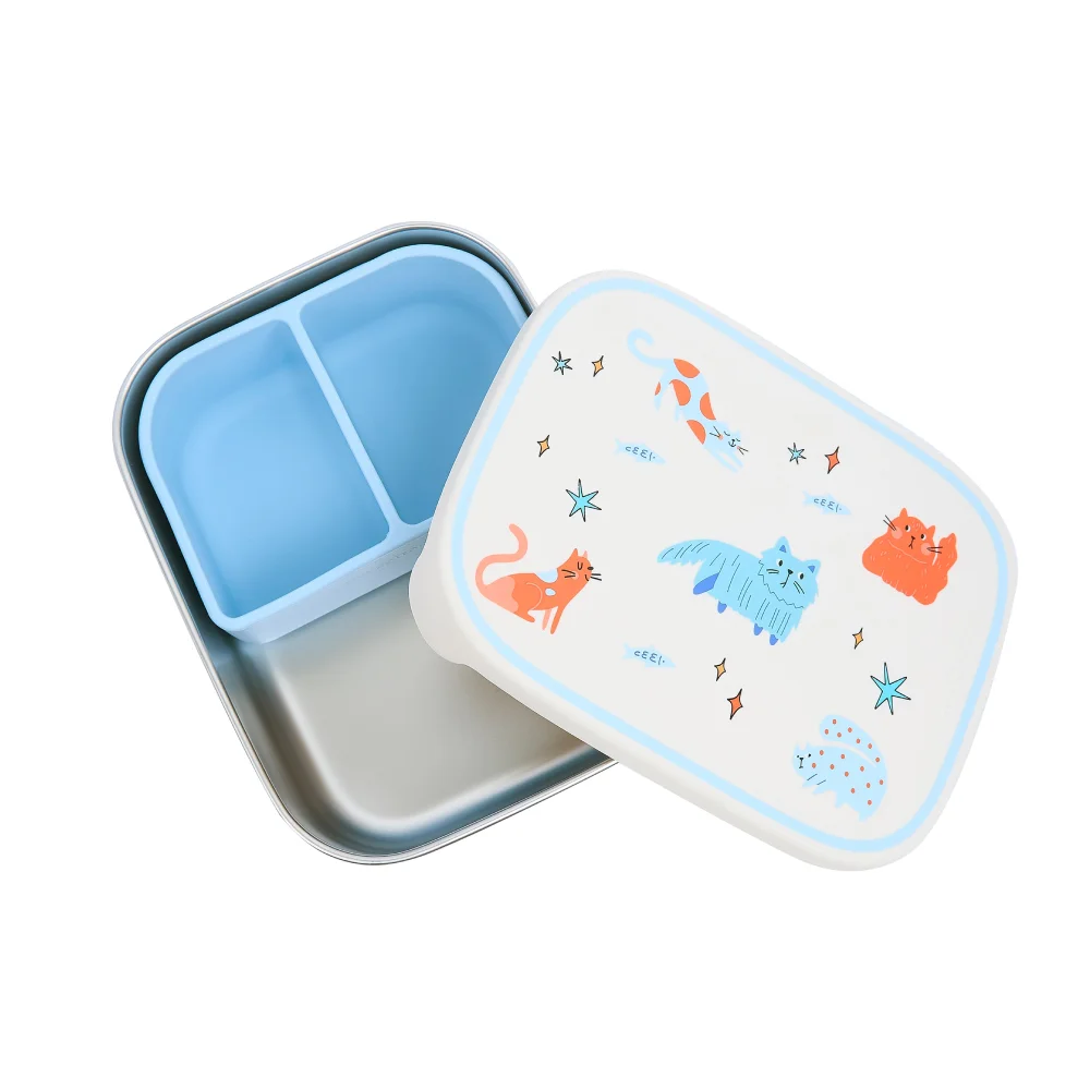Το The Cotton Cloud Meowtiful Cats είναι ένα υψηλής ποιότητας φαγητοδοχείο από ανοξείδωτο ατσάλι 304 και LFGB-πιστοποιημένη σιλικόνη, ειδικά σχεδιασμένο για ασφαλή και υγιεινή αποθήκευση γευμάτων. Με αποσπώμενα διαμερίσματα, προσφέρει ιδανική οργάνωση για σχολείο, παιδικό σταθμό, πικνίκ ή καθημερινή χρήση στο σπίτι.