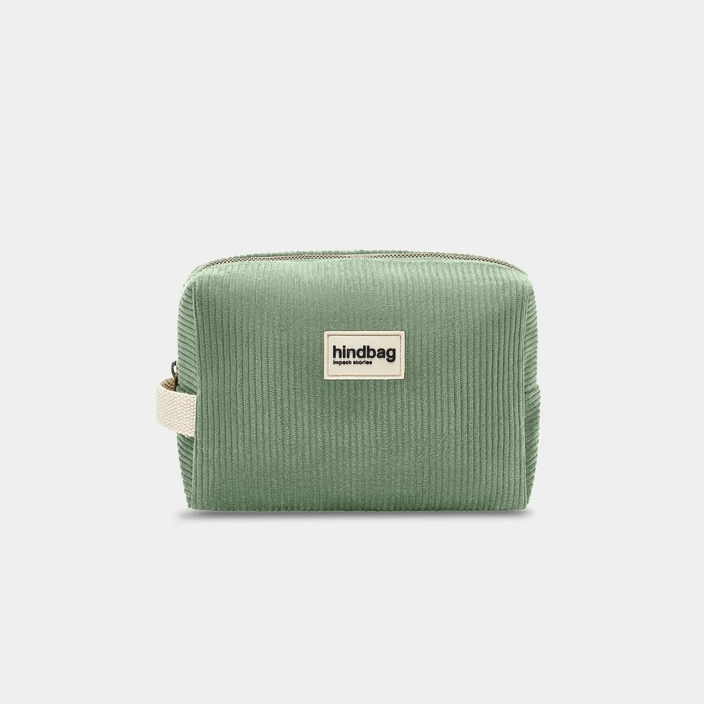 The Hindbag Leon Mint Green Corduroy toiletry bag is a weekend-sized pouch designed to carry your essentials in style.