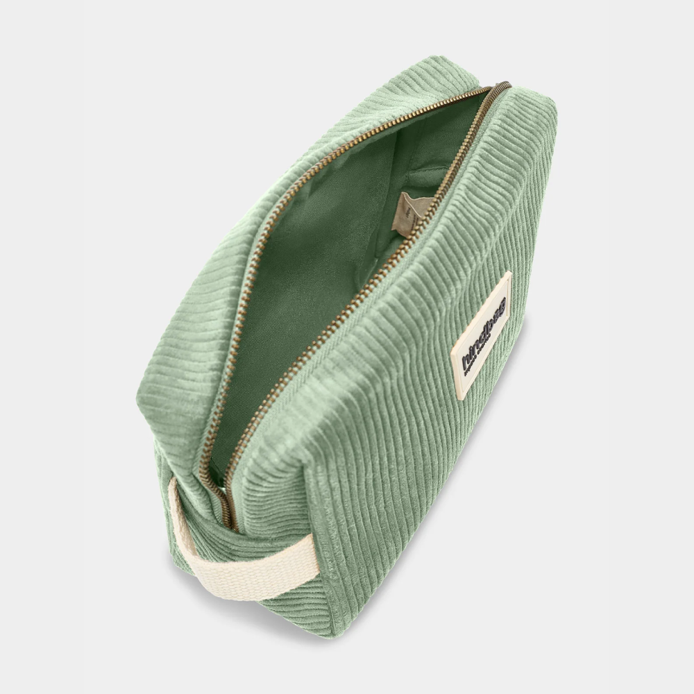 Made from GOTS-certified organic cotton corduroy, it features a clean lining to keep your belongings safe and organized. Its mint green color adds a fresh and trendy touch.
