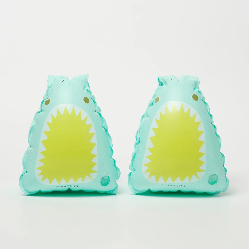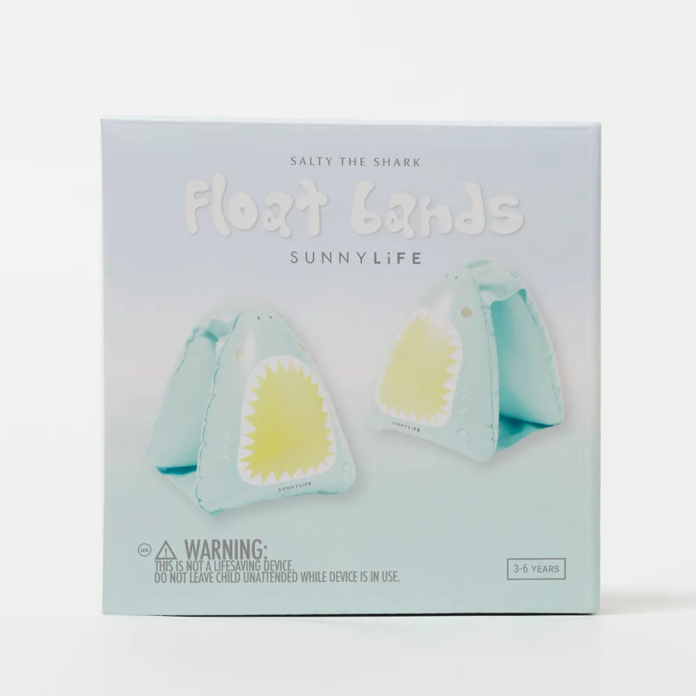 Τα Salty the Shark Buddy Float Bands της SUNNYLiFE είναι τόσο χαριτωμένα όσο και πρακτικά, με 3D φατσούλες καρχαρία και έντονο aqua χρώμα.